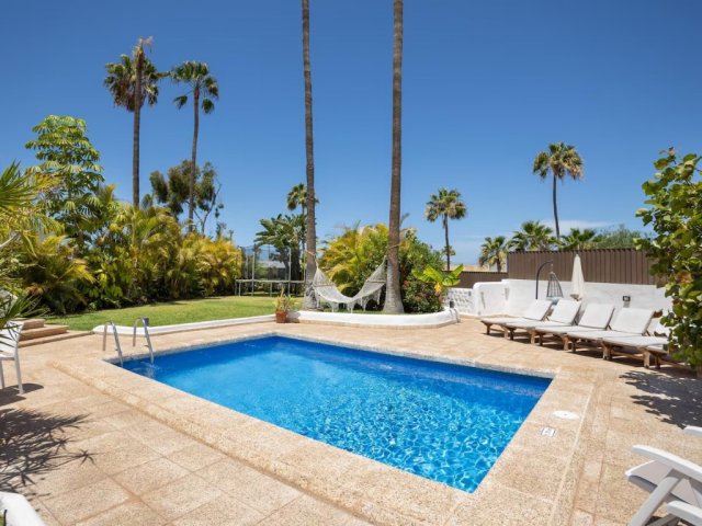 Comfortable holiday villa in Playa de las Americas near Siam Park with private pool, barbecue area and beach within walking distance, ideal for families.