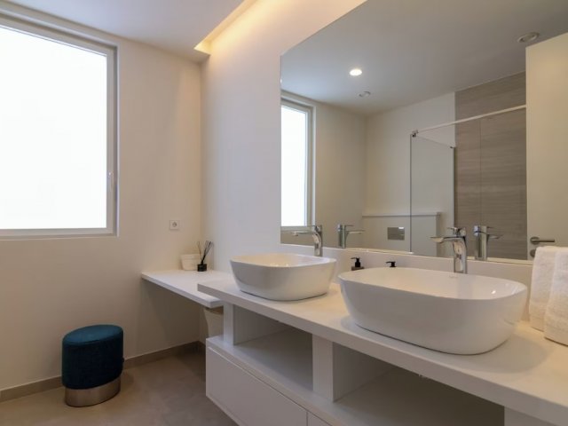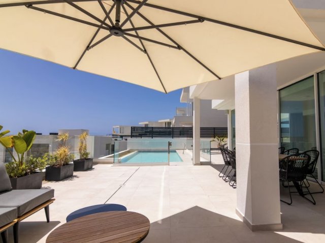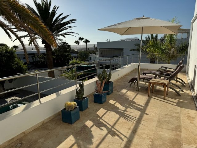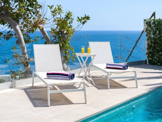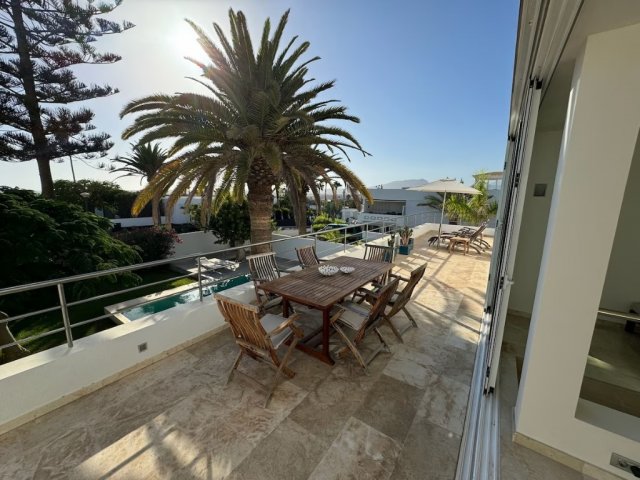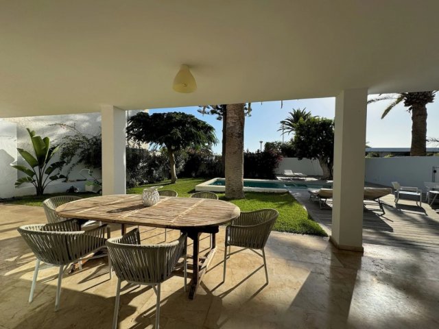 Stylish 5-bedroom villa for up to 10 guests with heated pool, roof terrace, two kitchens, sea views, gardens and direct coastal access in Costa del Silencio.