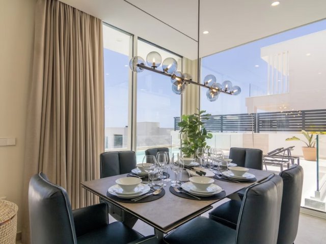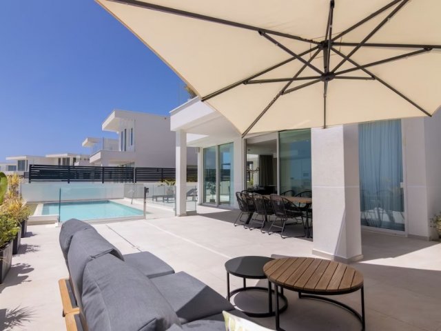 Modern villa in Amarilla Golf for up to 10 guests, with heated private pool, terrace, BBQ, sea views, AC, Wi-Fi, and close to beaches, golf, and restaurants.