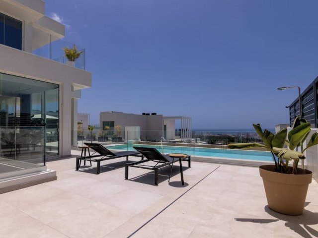 Spacious 5-bed villa in exclusive El Duque, with heated pool, elevator, garage, large terraces and play areas. Just 5 minutes from beach, shops and restaurants.