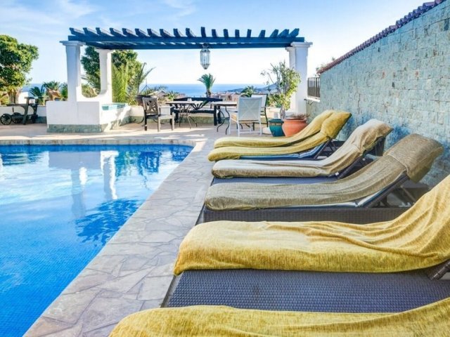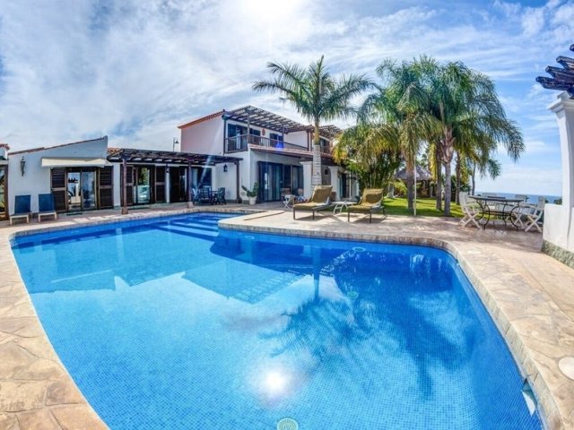 This luxury holiday villa in Amarilla Golf, Tenerife offers 6 bedrooms, a large heated pool and sea views, ideal for group stays.