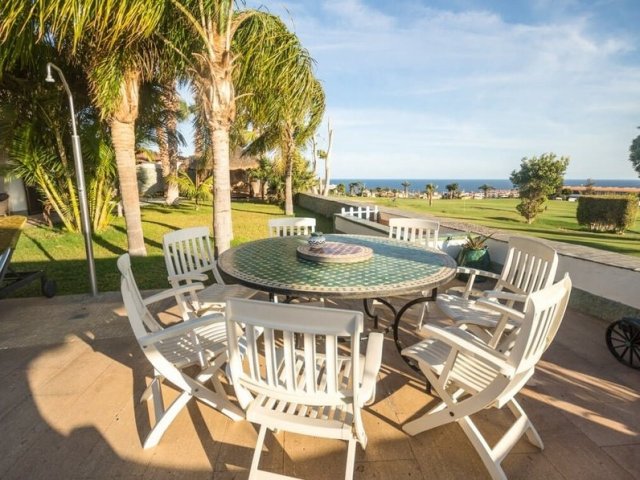 Stylish 3-bed villa in Amarilla Golf with heated pool, panoramic ocean views, garden, air-con, and a seafront terrace just steps from Playa El Barranco.
