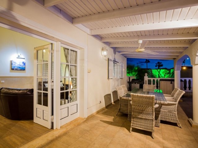 Spacious 4-bedroom holiday villa with a large pool, games area, outdoor dining, private parking, and walking distance to beaches, golf, restaurants and shops.