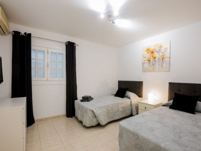 Spacious 4-bedroom villa in Golf del Sur with two swimming pools, heated front pool, large garden, AC, WiFi, and walking distance to San Blas Centre.