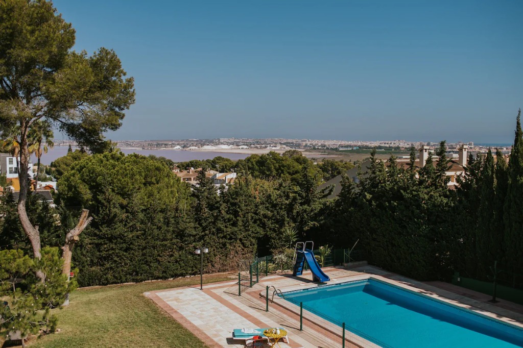 This villa is located in a quiet residential area of Torrevieja and offers a relaxed setting for large families or groups. Featuring 7 bedrooms, 4 bathrooms and space for up to 14 guests, the accommodation includes generous outdoor areas, entertainment spaces and a private pool for sunny days.