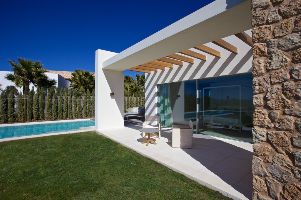 This modern 5-bedroom villa accommodates up to 10 guests and offers each bedroom with its own garden view. The saltwater pool and beautifully landscaped terraces create the ideal setting for relaxation, making it perfect for families or groups seeking the ultimate Ibiza experience.