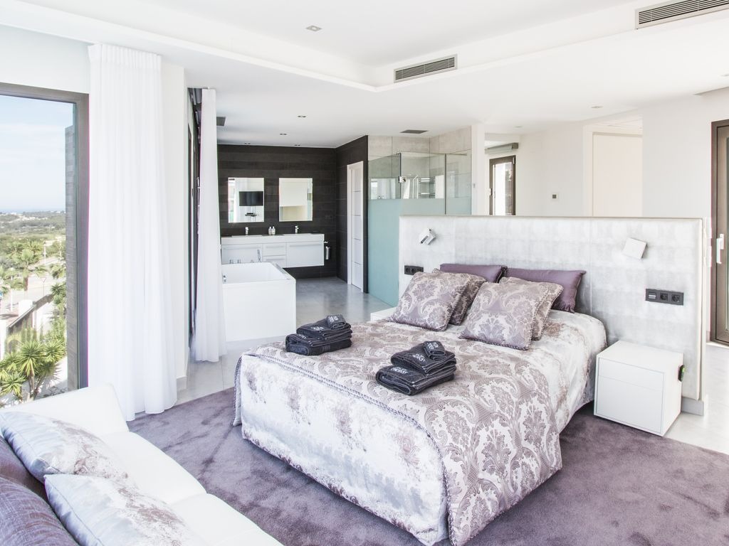 Accommodating up to 8 guests, the villa features 4 beautifully appointed bedrooms and 6 bathrooms, ensuring ample space for family or friends. The master suite includes a bath, shower, double vanity, and a seating and dressing area. Two bedrooms can be arranged as twins or superking beds, each with ensuite facilities, while the fourth bedroom also offers flexible bedding and a private ensuite. A garden shower room and separate guest WC add extra convenience for beach days or entertaining.