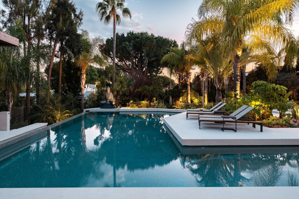 This luxury holiday home is located in the exclusive and private residential area of Hacienda Las Chapas, in eastern Marbella. Set in a peaceful and secluded environment, the property offers easy access to the coast and local attractions, with the beach reachable in approximately 20 minutes on foot, Marbella centre around a 15-minute drive, and Puerto Banús approximately 25 minutes away by car.