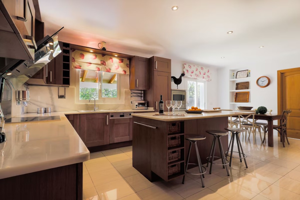 We stayed a full week and quickly found our rhythm. Some mornings started with a walk to Cala Gran, others stayed back and used the pool early. The living room opened nicely to the terrace, so indoor and outdoor time blended without thinking about it. Bedrooms upstairs were quiet at night, especially the main one with the terrace overlooking the garden. We cooked a lot and the kitchen worked well even with everyone around. One evening we asked for a restaurant recommendation and got a good local tip that we wouldn’t have found on our own. The villa felt practical but still warm, not showy, just easy to live in day after day.