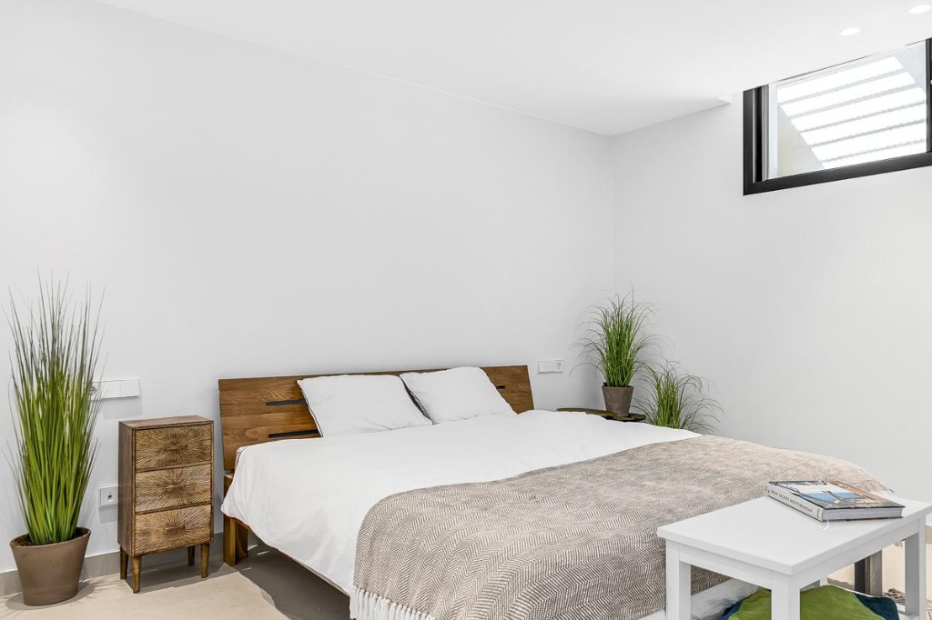 - Double bedroom with wall-mounted TV