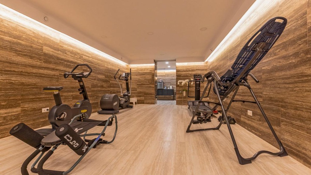 Lower Ground Floor - Bedroom with joined single beds and ensuite shower - Bedroom with double bed (200 x 220 cm), ensuite bathroom, dressing room, and garden access - Well-equipped kitchen - Second living room with dining area - Laundry room - Gym and spa (subject to T&Cs;)