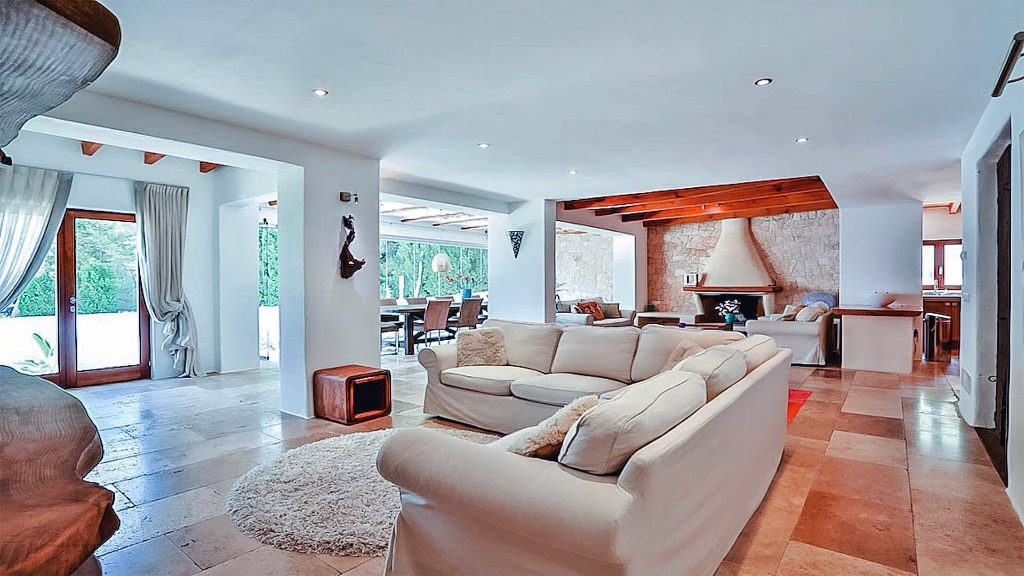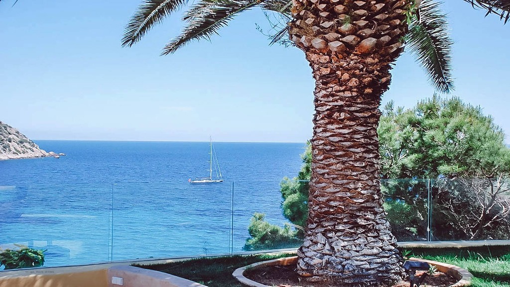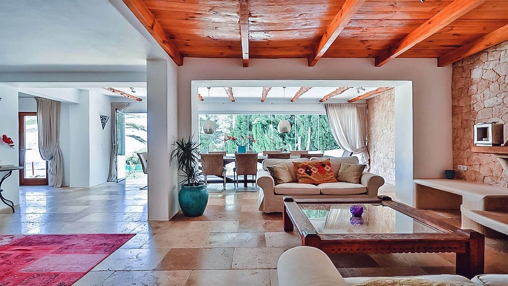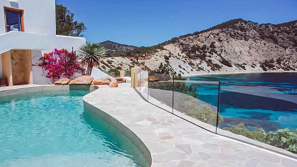 The villa is located just 350 metres from Amante Beach Club and the rocky coastline of Sol d'en Serra, with nearby sandy beaches including Cala Llonga (1.5 km), Santa Eulalia (6.7 km), and Talamanca (12 km). Ibiza Town is a 20-minute drive (13 km) away.