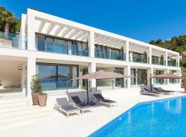 Experience the elegance of this 5-bedroom front-line villa in Cala Llonga, Ibiza, offering spectacular sea views and luxurious amenities. Perfectly positioned on the elevated coastline of Sol d'en Serra, the property is just a short walk from the renowned Amante Beach Club and the vibrant local offerings of Cala Llonga.