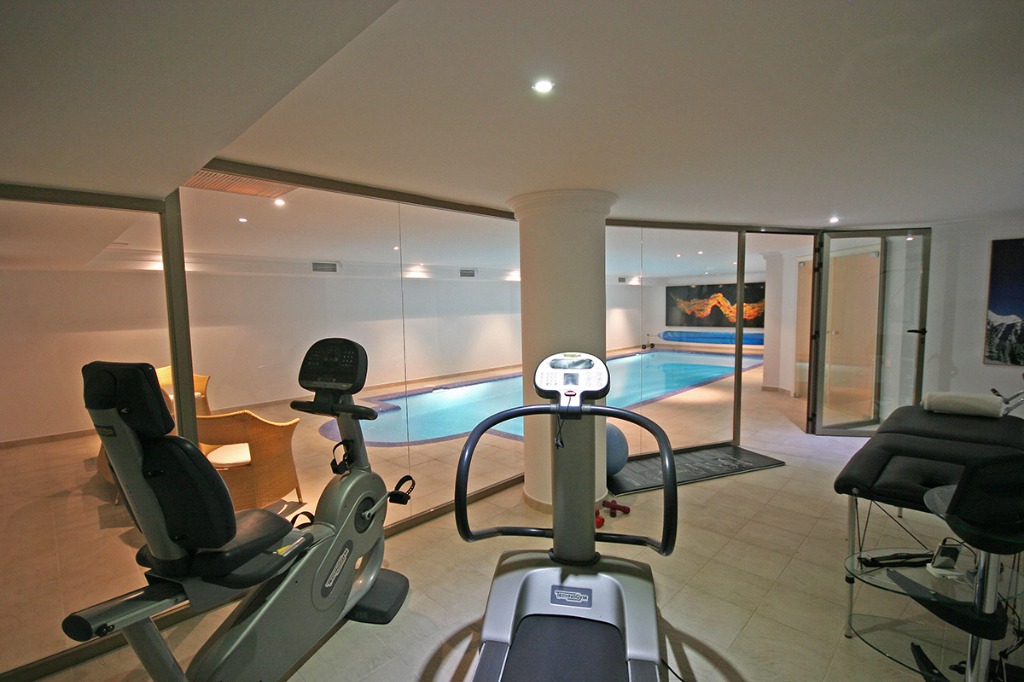 Inside, over 1,000 sq. meters (10,000 sq. ft.) of living space are spread across three floors, with two lounges-one formal and one informal-opening onto terraces. The superbly equipped kitchen and dining area offer everything required for casual meals or gourmet entertaining. Fitness enthusiasts will appreciate the heated indoor pool and private gym, ensuring exercise and wellness are always on hand.