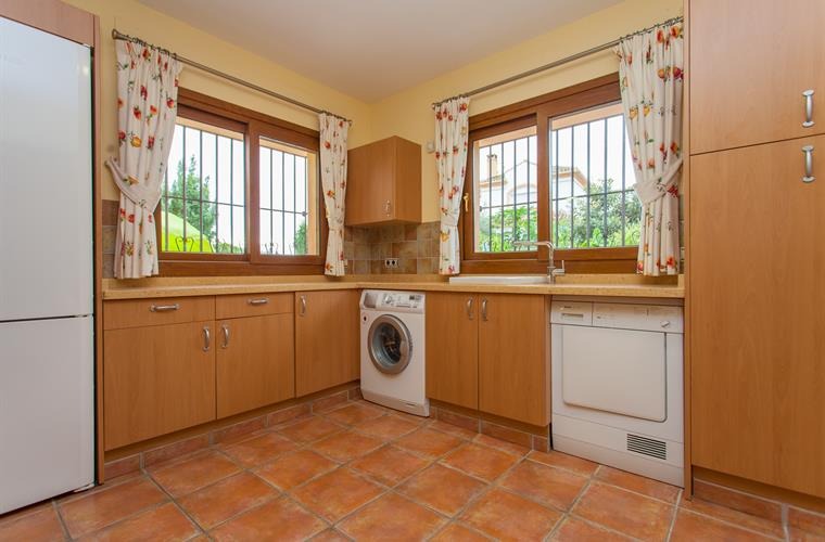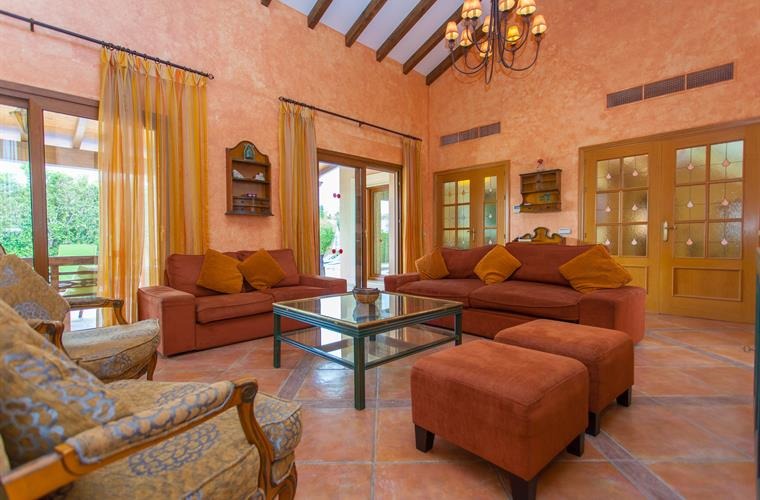 Outside, the covered and paved terrace with garden furniture and the saltwater swimming pool create the perfect space to relax and enjoy the villa.