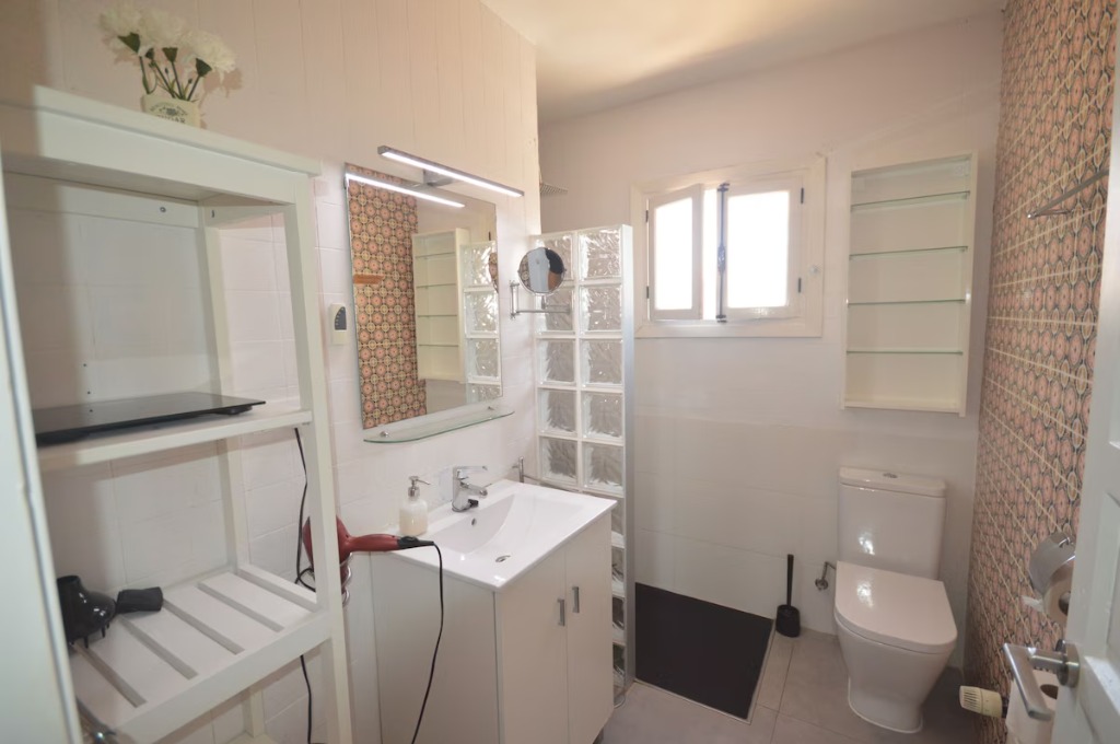 The villa sits within an 800 m² enclosed plot with 2-meter walls for privacy. A garden and play space make it ideal for children. The location is one of the best in Albir: just 300m from restaurants, supermarkets and shops, and a 3-minute walk to the entrance of the Sierra Gelada Natural Park, popular for jogging, hiking and picnics. The beach and village are close enough to walk everywhere without a car. In the evening, you can hear the sea when everything becomes quiet.