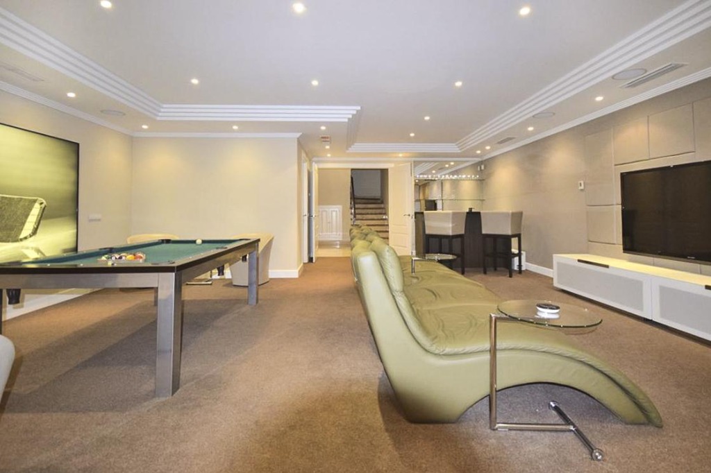 The lower ground floor contains two additional bedrooms-one double and one twin-both with en-suite facilities, as well as a bathroom with shower. This level also includes a cinema and games room with a bar and a small gym area equipped with essential workout equipment.