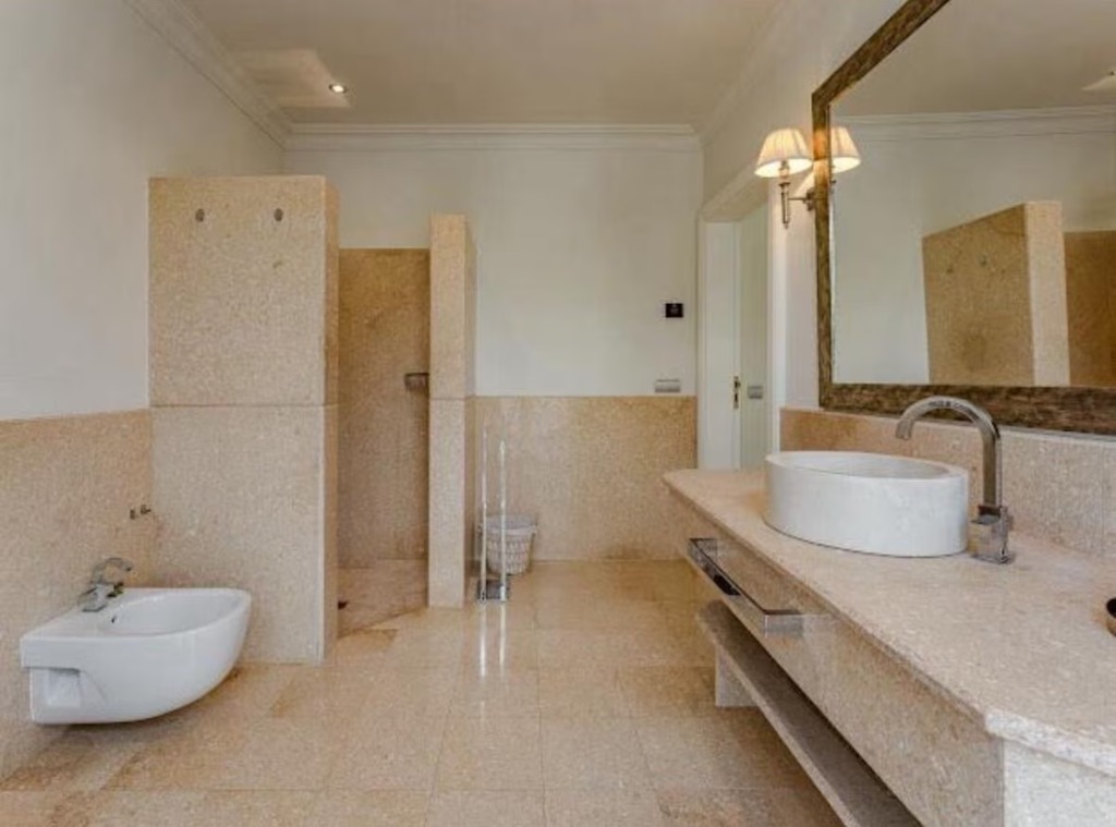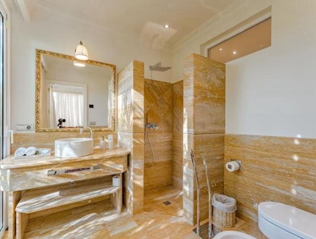 The villa offers 8 elegantly furnished bedrooms with air conditioning, luxurious bedding, and modern amenities, providing comfort for all guests. Each bedroom enjoys access to a bathroom, with a total of 7 full bathrooms and 1 half bathroom. Bathrooms include a combination of bathtubs, showers, bidets, hair dryers, and premium toiletries, creating a spa-like experience for everyone.
