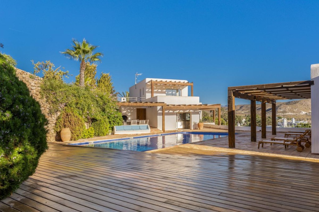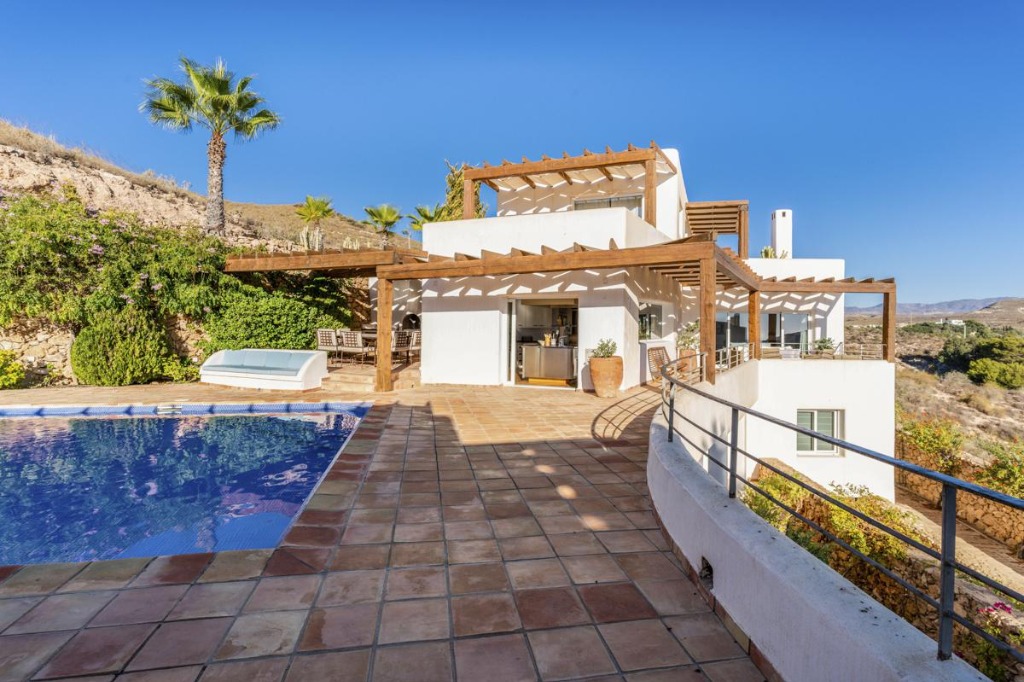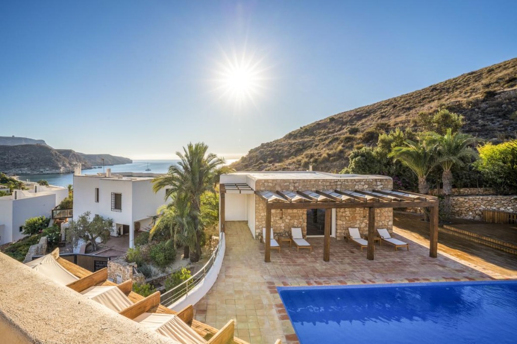 Situated in Agua Amarga, Almeria, this contemporary property offers a luxurious retreat with five bedrooms and seven bathrooms, accommodating up to ten guests. Comprising a main house and a guest house, the villa features a heated swimming pool, multiple terraces, and panoramic views of the sea and mountains, making it ideal for families or groups seeking privacy, comfort, and style. Concierge services, airport transfers, and private tours are available to enhance your stay.