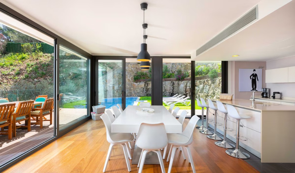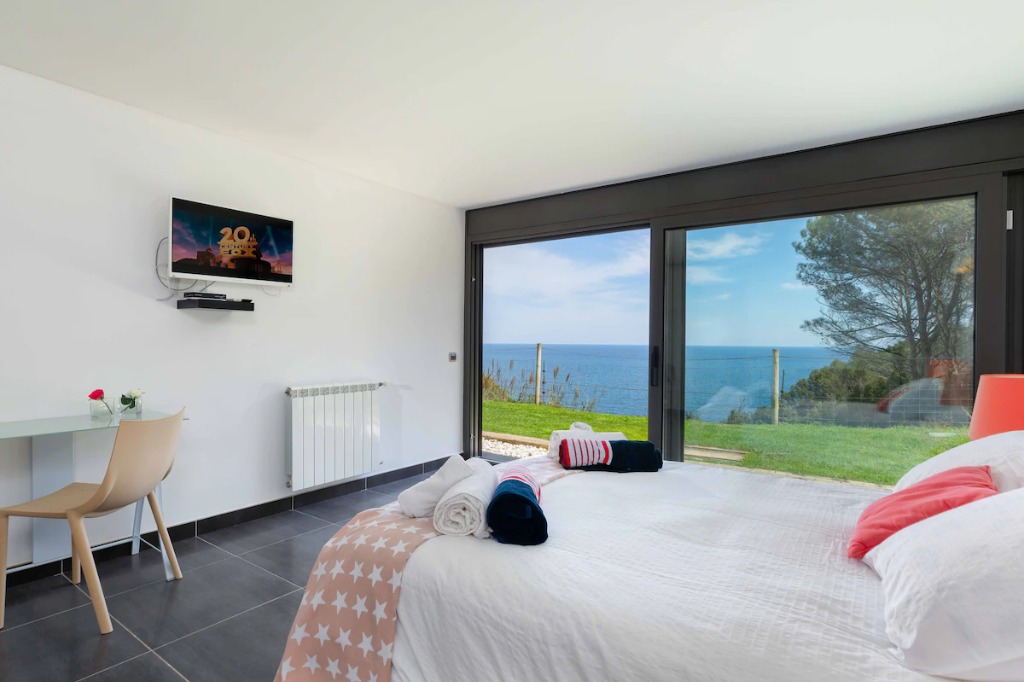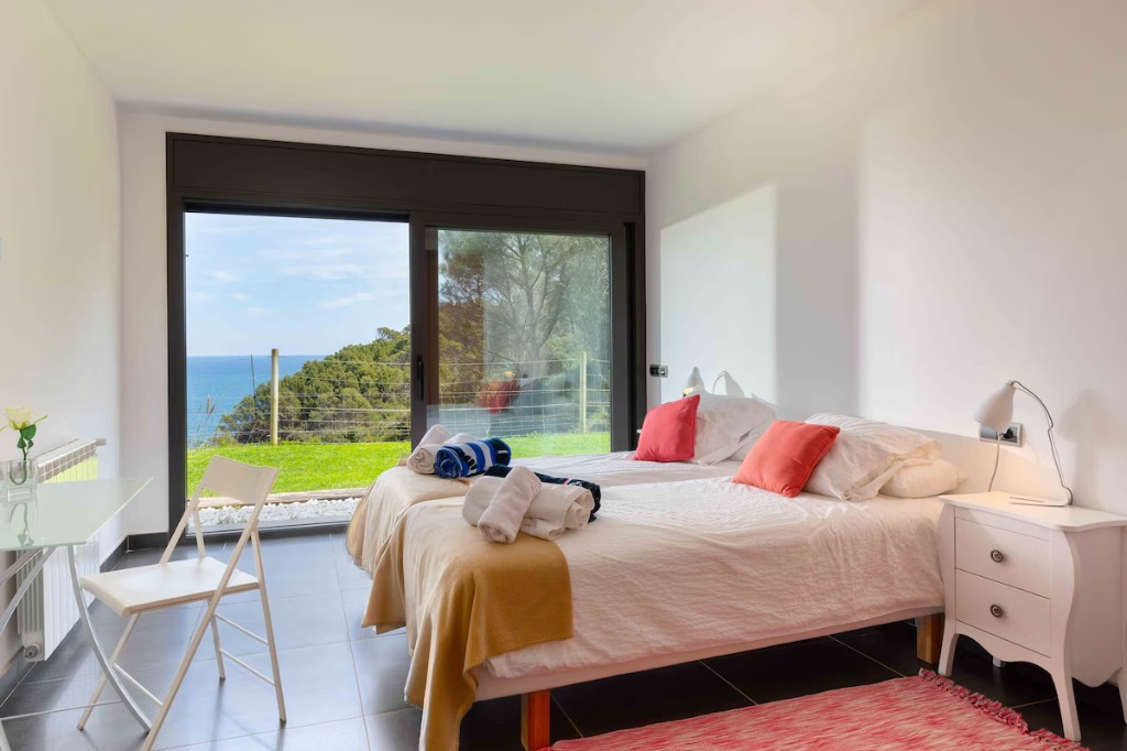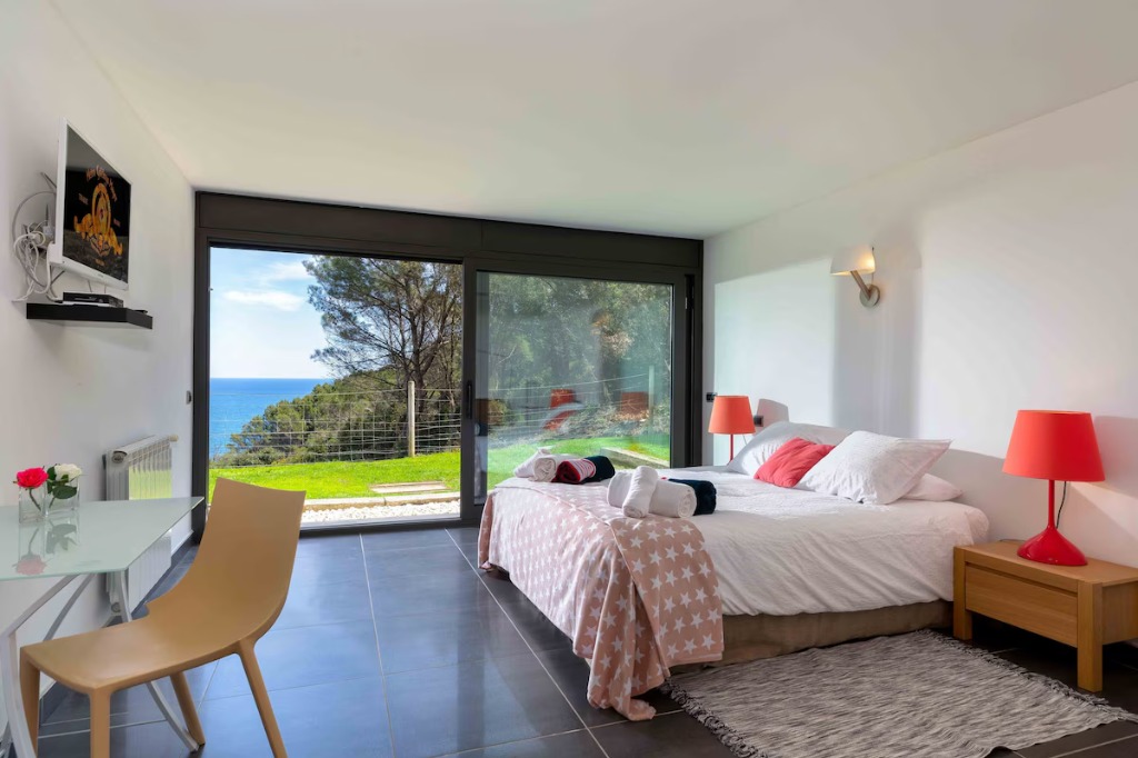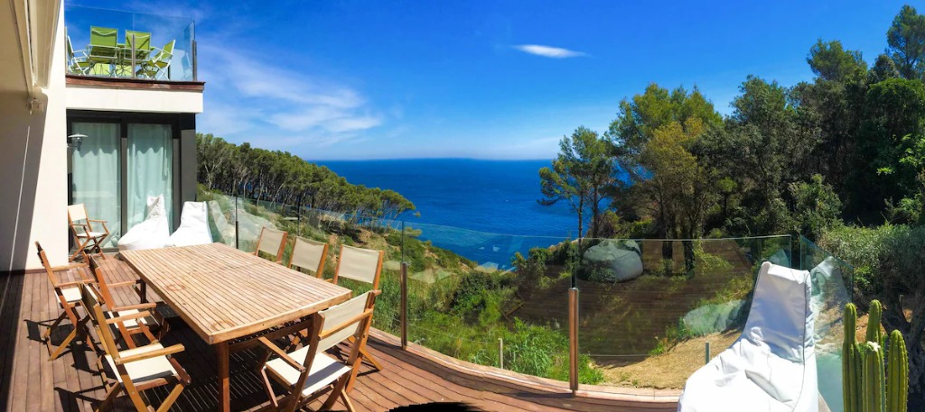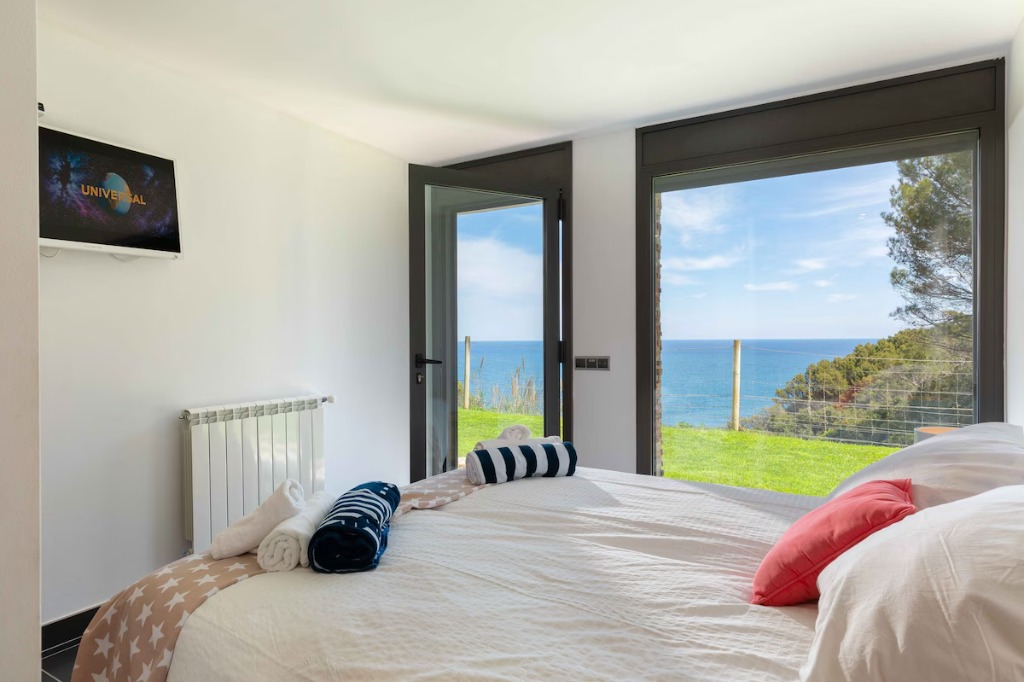 This modern seafront villa is set between the coves of Sa Riera and Aiguafreda, offering direct views over the pine forest nature park and Mediterranean Sea. Designed for family stays, the accommodation features 5 bedrooms, 4 bathrooms and space for up to 10 guests, spread across three stylish levels connected by a private elevator.