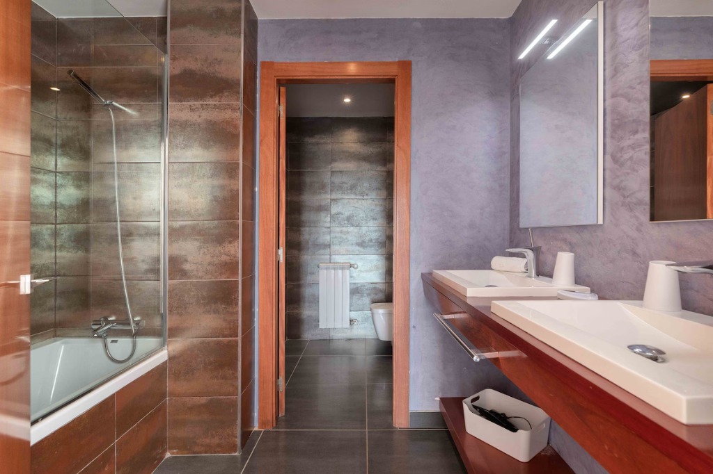 BATHROOMS - 4 TOTAL - Bathroom 1: bathtub, bidet, toilet, double sink - Bathroom 2: bathtub, toilet, sink - Bathroom 3: bathtub or shower, toilet - Bathroom 4: hydromassage bath, shower, toilet, double sink - Separate guest WC on main level