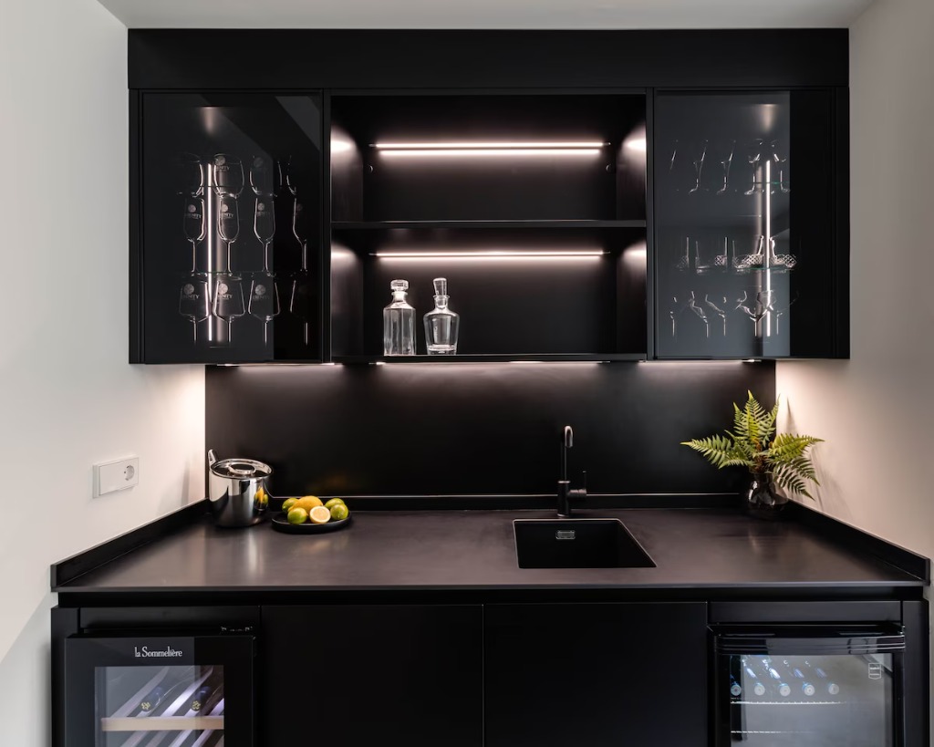 The accommodation is spread over three levels and offers approximately 406 m² of elegant living space. Designed with modern comfort in mind, the interior features high-quality finishes, air conditioning throughout and a central control system that allows guests to adjust lighting, curtains and climate control with ease. An elevator connects all floors, and an alarm system provides added security.