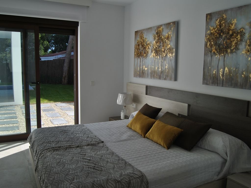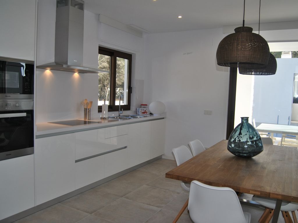 The villa features three bedrooms and three bathrooms, including two indoors and one outdoors. Designed with modern furnishings, the accommodation is bright, fully air-conditioned, and equipped with underfloor heating. Entertainment options include English and Spanish satellite TV, Netflix, and high-speed internet. The kitchen is fully equipped with a dishwasher, oven, microwave, washing machine, and dryer, ensuring convenience for all guests.