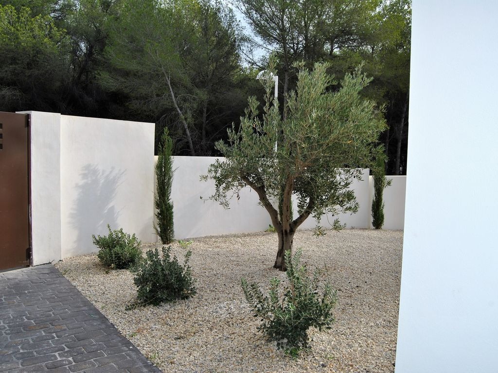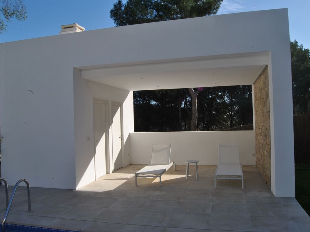 The villa's location allows for a variety of activities and attractions: Moraira has three beaches and four small bays, offering a different coastal experience each day. Guests can rent a boat from Moraira Marina to explore the coastline or enjoy a sunset cruise in the unspoiled bays. Day trips to Formentera or Ibiza are possible from Denia's harbor, just 20 minutes away. Wine enthusiasts can visit one of Alicante's famous wineries, located a 30-minute drive from the property. A large shopping mall with stores, restaurants, and cinemas is also only 20 minutes away.