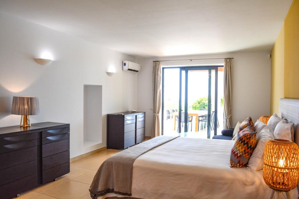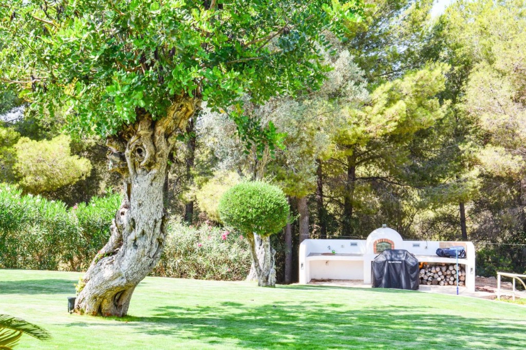 The accommodation features five double bedrooms in the main house, all with en-suite bathrooms, plus a further double bedroom with en-suite in the guest house. Each room is air-conditioned and designed for comfort. The villa's expansive living spaces include a lounge with satellite TV, a dining area, and a fully equipped modern kitchen. Large terraces offer outdoor dining and chill-out areas, while a curved 25-metre pool with surrounding sun loungers, a barbecue, outdoor shower, and a rooftop jacuzzi provide luxurious relaxation. The grounds are filled with fruit trees and landscaped gardens, ensuring serenity and seclusion. Full privacy is guaranteed, with no external views into the property.